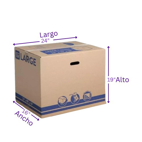 Caja Large (24 x 16 x 19 in): Esta caja ofrece una gran capacidad de carga para tus envíos voluminosos. Ideal para mover ropa, equipos deportivos u otros artículos grandes de forma segura y eficiente.